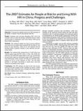 The 2007 estimates for the number of people exposed to and infected with HIV in China utilized data newly available through expanded screening and surveillance, while also building on the experience gained during the 2003 and 2005 estimation work. As with past estimates, the workbook method recommended by the World Health Organization (WHO) and United Nations Program on HIV/AIDS (UNAIDS) was chosen as the most suitable for an epidemic still concentrated among certain subpopulations and in a situation where data are still relatively limited.