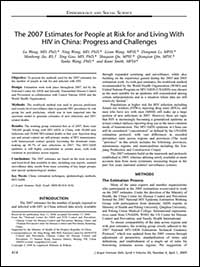 The 2007 estimates for the number of people exposed to and infected with HIV in China utilized data newly available through expanded screening and surveillance, while also building on the experience gained during the 2003 and 2005 estimation work. As with past estimates, the workbook method recommended by the World Health Organization (WHO) and United Nations Program on HIV/AIDS (UNAIDS) was chosen as the most suitable for an epidemic still concentrated among certain subpopulations and in a situation where data are still relatively limited.