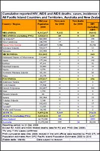 Cumulative reported HIV, AIDS and AIDS deaths: cases, incidence rates and gender, plus cases with missing details; All Pacific Island Countries and Territories, Australia and New Zealand to December 2008