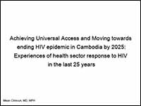 The presentation shows Situation of the HIV Epidemic in Cambodia, sex behavioral, HIV and STI trends among brothel-based sex workers, Key Lessons Learned from Cambodia 1.0: How Cambodia stabilized HIV epidemic, major challenges and more.