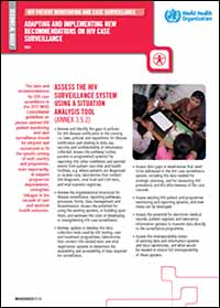 The tools and recommendations for HIV case surveillance in the 2017 WHO Consolidated guidelines on person-centred HIV patient monitoring and case surveillance should be adopted and customized to fit the specific setting of each country and programme; most importantly, to support programme improvement, strengthen linkages in the cascade of care and optimize health outcomes.