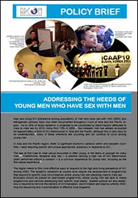 Emphasis should be placed on peer-based programmes, where young men are able to shape programmes and services addressing their specific local needs. Greater political will and leader-ship is required to remove the barriers of criminalisation, discrimination and stigma currently inhibiting the resourcing and implementation of effective local programs.
