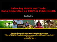 Presentation on Balancing Health and Trade: Doha Declaration on TRIPS and Public Health at Regional Consultation and Planning Workshop “Use of TRIPS Flexibilities to Access Affordable ARVs in Asia” Bangkok 29-31 May 2012