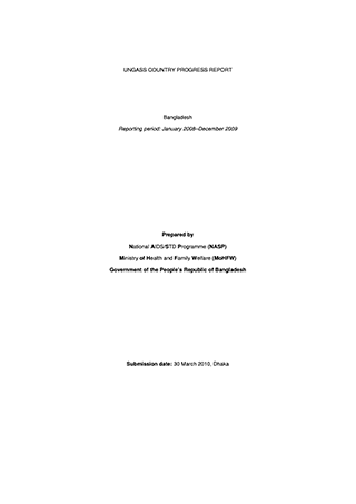 National STD/AIDS Programme (NASP) of the Ministry of Health and Family Welfare, Government of Bangladesh, provided coordination and leadership support to the process of preparation of UNGASS 2010 Bangladesh Country report. Report preparation was a joint effort of key stakeholders from government, civil society organizations (particularly organizations working on HIV prevention and care), UN agencies and other development partners. There were several consultations, one on one and in groups, to involve all national key stakeholders in the process of UNGASS report preparation.