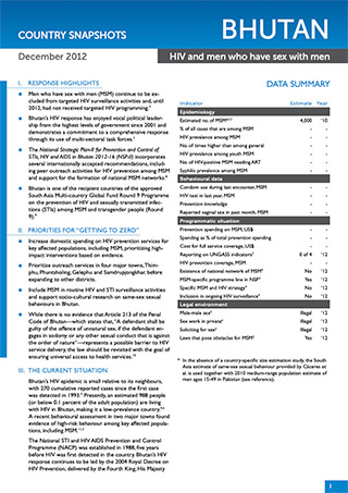 Bhutan Country Snapshot December 2012: HIV and Men who have Sex with Men