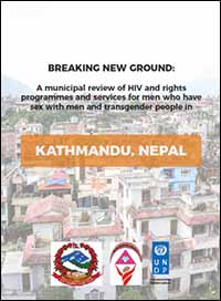 Breaking new ground: A municipal review of HIV and rights programmes and services for men who have sex with men and transgender people in Kathmandu, Nepal was conducted in 2014-2015 as part of the broader UNDP-led initiative that examined HIV and rights programmes and services for men who have sex with men and transgender people in seven South Asian cities. The review aims to inform and strengthen Kathmandu’s municipal HIV and rights responses for these vulnerable key populations. Government and community leaders were crucial to the review process as they provided valuable inputs that informed the recommendations.