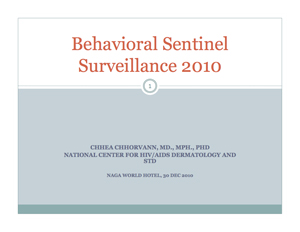 Behavioral sentinel surveillance (BSS) has been conducted by NCHADS to document behavior changes among sentinel groups since 1997. The objectives of the BSS 2010 are: