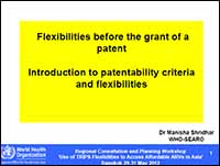 Presentation on Flexibilities before the grant of a patent: Introduction to patentability criteria and flexibilities at Regional Consultation and Planning Workshop "Use of TRIPS Flexibilities to Access Affordable ARVs in Asia" Bangkok 29-31 May 2012