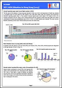 The first case of HIV infection in Hong Kong was reported in 1984. As of 2015, the Department of Health has received a cumulative total of 7,718 reports of HIV infection and 1,655 AIDS cases under the voluntary and anonymous HIV/AIDS reporting system. The number of annual reports was a record high of 725 cases in 2015, 11% increase compared to the 651 cases in 2014. People infected with HIV progress to AIDS when they suffer from clinical complications of severe immunodeficiency due to HIV. In 2015, 110 AIDS reports were received. The most common illnesses presenting at AIDS were Pneumocystis pneumonia and tuberculosis.