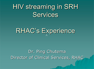 Slides on Integration of VCCT Services into Sexual Reproductive Health Clinics. Presented by Dr. Ping Chutema, Director of Clinical Services, RHAC.