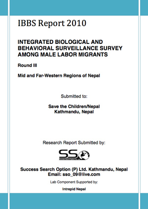 This is the third round of the Integrated Bio-Behavioral Surveillance Survey (IBBS) conducted in 2010 to collect behavioral data from labor migrants in the mid and far western districts of Nepal. This round was conducted to obtain updated estimates of the prevalence of HIV among the labor migrants and also aimed to assess the changes that have taken place in the migration trends and the sexual behavior of the labor migrants in the mid and far western region of Nepal. The overall objective of the study is to determine the prevalence of HIV among returnee male labor migrants from India and to assess their HIV/STI risk-related behaviors.