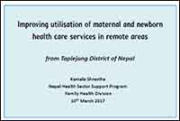 Maternal Mortality Ratio decreased from 539/100,000 live births in 1996 (NHFS) to 258 in 2015 (WHO). Inadequate attention in improving maternal and newborn health services in remote or mountainous areas of Nepal. Both demand-side and supply-side combined package of intervention has greatest improvement in use of maternal and new born health services in remote areas.