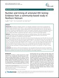 HIV testing for pregnant women is an important component for the success of prevention of mother-to-child transmission of HIV (PMTCT). A lack of antenatal HIV testing results in loss of benefits for HIV-infected mothers and their children. However, the provision of unnecessary repeat tests at a very late stage of pregnancy will reduce the beneficial effects of PMTCT and impose unnecessary costs for the individual woman as well as the health system. This study aims to assess the number and timing of antenatal HIV testing in a low-income setting where PMTCT programmes have been scaled up to reach first level health facilities.