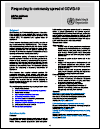A comprehensive package of measures is required for countries to prepare when there are no cases, sporadic cases, clusters of cases, community transmission, or country-wide transmission. The priorities and intensity of work for each technical area will depend on which scenario a country or a sub-national area currently faces. This document provides guidance for responding to community transmission of COVID-19.