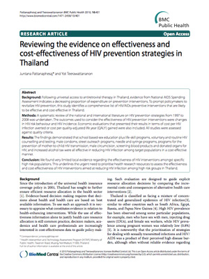 Following universal access to antiretroviral therapy in Thailand, evidence from National AIDS Spending Assessment indicates a decreasing proportion of expenditure on prevention interventions. To prompt policymakers to revitalize HIV prevention, this study identifies a comprehensive list of HIV/AIDs preventive interventions that are likely to be effective and cost-effective in Thailand.