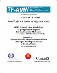 This document is a summary report of the Post 6th ASEAN Forum on Migrant Labour GMS Consultation Workshop on good practice to improve existing complaint mechanism held on 15-16 August 2014 at Phnom Penh, Cambodia.
