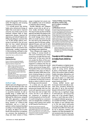 India’s HIV epidemic is of global interest. 2 years ago, we showed that HIV pre- valence in young women declined by about a third between 2000 and 2004 in the southern states of Andhra Pradesh, Karnataka, Maharashtra, and Tamil Nadu. HIV prevalence at young ages (15–24 years) is a useful proxy for trends in HIV incidence. We now present trends up to 2007.