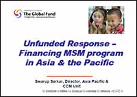 Presentations - Released in 2008 This is a presentation on Unfunded Response: Financing MSM Program in Asia and the Pacific. Downloads Download Presentation(806.37 KB) Organizations The Global Fund to Fight AIDS, Tuberculosis and Malaria