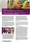 Faith-based organizations are essential providers of rural health care in many parts of the developing world and play an important role in serving the hard-to-reach and poorest population groups. Recognizing these unique achievements and the critical role of faith-based organizations, the Global Fund encourages their participation through diverse ways such as grant implementation, building local capacity, advocacy, and fundraising.